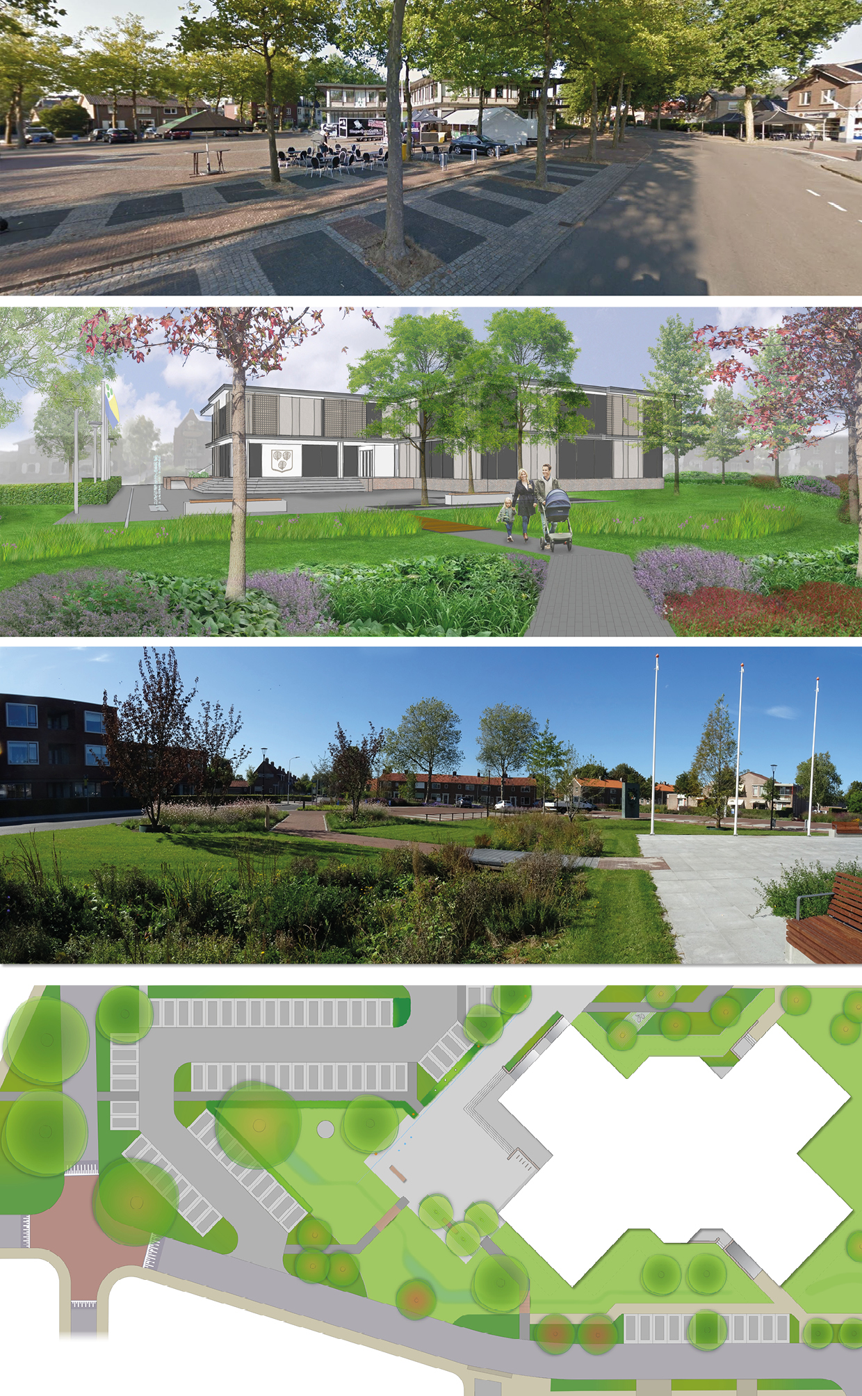 Van parkeerplaats naar een groenblauw park. Met een beplantte wadi, verschillende soorten beplanting, biodiversiteit, regenwaterbuffer en veel minder bestrating, terwijl het aantal parkeerplaatsen gelijk is gebleven.